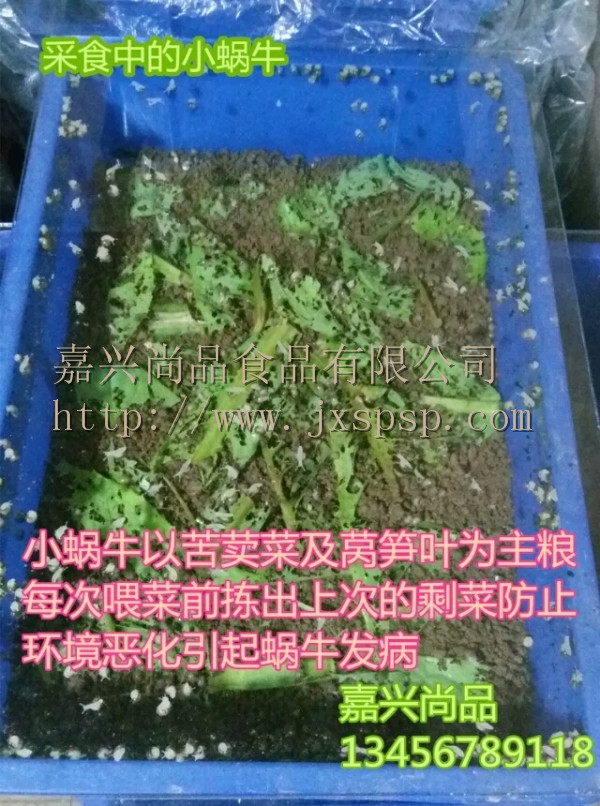 5、蜗牛是一种高蛋白质的动物,喂食高蛋白质的饲料才能适应它的生长需求,一般都是利用猪用全价颗粒饲料0号或者1号另加适量进口鱼粉,酵母粉,生石灰粉,必要的防病药物以及适量的青绿饲料(莴笋叶,苦荬菜叶为佳)。对于刚刚入手的朋友可以只喂苦荬菜或者莴笋叶1周以上,等蜗牛养成采食习惯后再行添加精饲料,可以减少饲料过剩生虫的情况发生。经过一段时间的培育,幼蜗牛慢慢长大,饲养员应该根据养殖密度不断进行分箱管理,原则上一箱分成两箱。